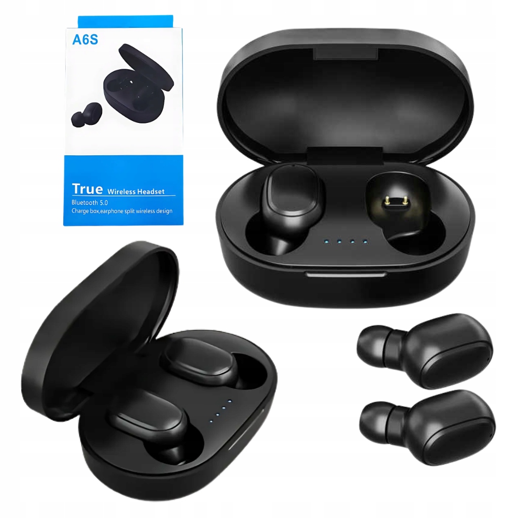SŁUCHAWKI BEZPRZEWODOWE DOUSZNE BLUETOOTH CZARNE BT TWS WIRELESS + ETUI