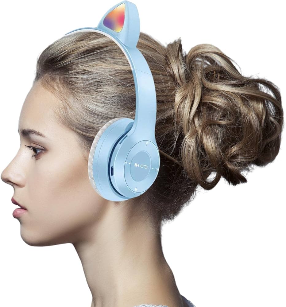 D/A Bezprzewodowe słuchawki nauszne na siłownię | bezprzewodowe słuchawki nauszne z kocimi uszami z wbudowanym mikrofonem – urocze bezprzewodowe słuchawki nauszne z efektem świetlnym LED : Amazon.pl: Elektronika